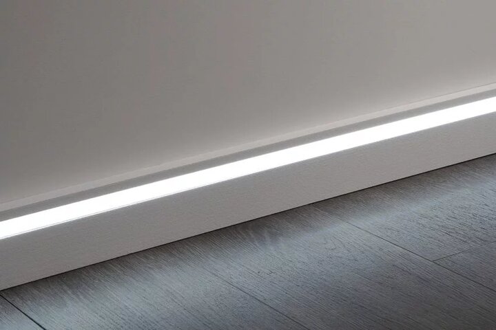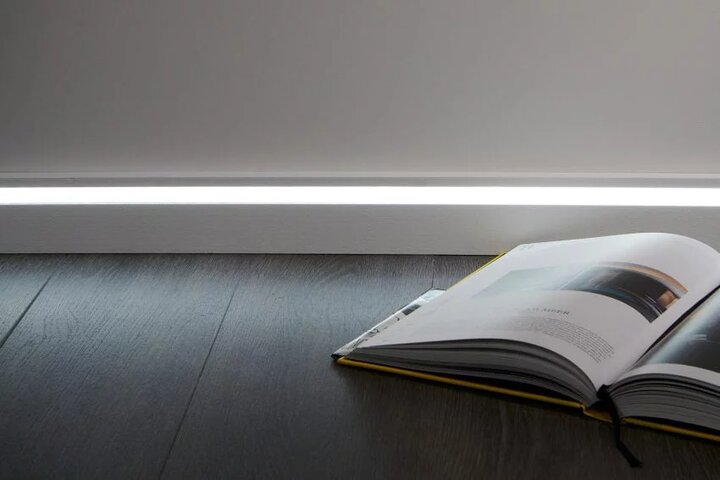 Questo moderno battiscopa rappresenta una fonte d’illuminazione indiretta a LED dal design creativo e moderno. Le varie possibilità di applicazione permettono di creare diversi effetti di finitura e di personalizzare gli interni. L’illuminazione indiretta a LED evoca un’atmosfera accogliente e domestica e permette di percepire gli ambienti maggiormente ampi. L’effetto delle luci può trasformare radicalmente l’aspetto degli interni. Oltre ai vantaggi estetici, il battiscopa protegge le pareti contro urti, graffi e danni.